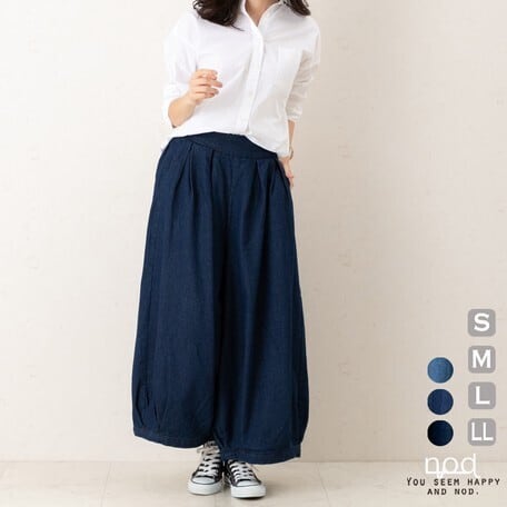 ハリのあるデニムのボリュームパンツです。