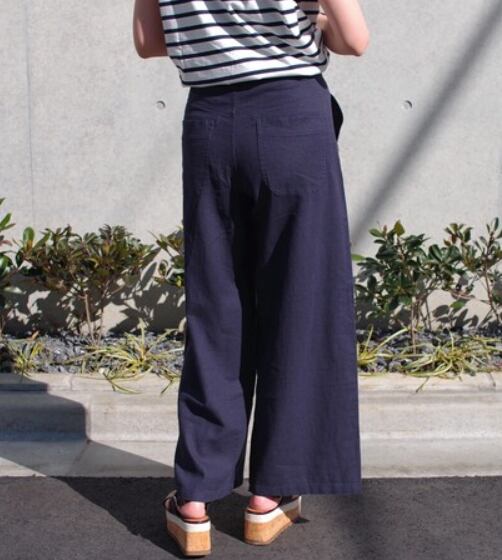 ワイドなシルエットとリネン素材のカジュアルな雰囲気が可愛いベイカーパンツは、Tシャツなどのシンプルトップスに合わせるだけで季節感のある着こなしに。
