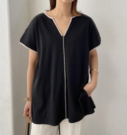 Shelly island◆キーネックパイピングカフタンプルオーバー