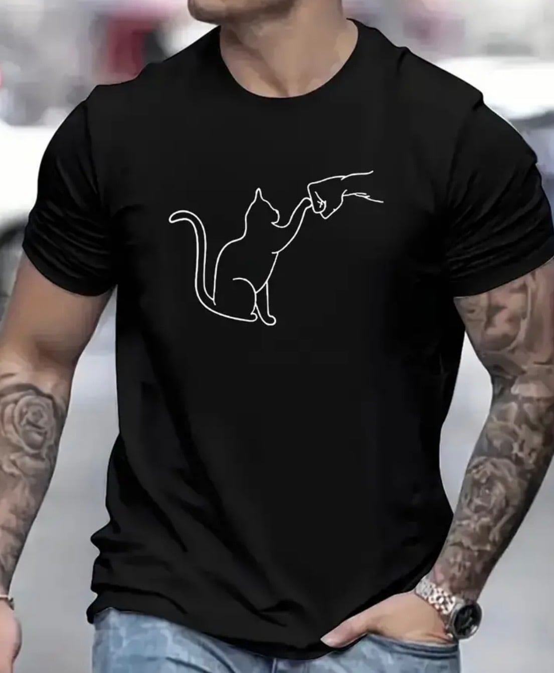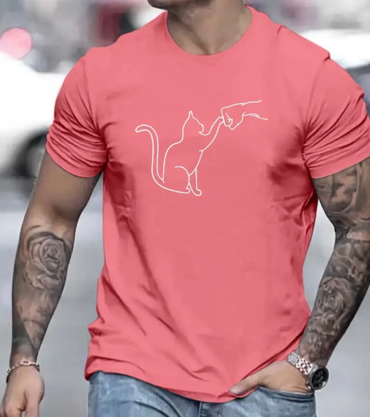猫好きにはたまらない猫ちゃんとグータッチプリントTシャツ!ストレッチ、速乾性抜群のTシャツです。こちらは残念ながらレディースの展開がないのでメンズXSサイズでご用意しました。レディースサイズのM〜Lサイズ相当です。カラーは12色展開です。